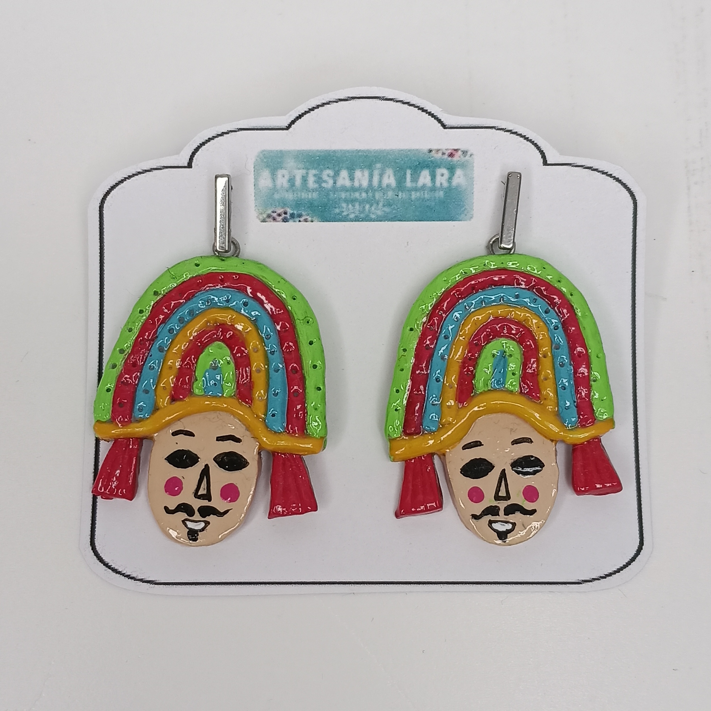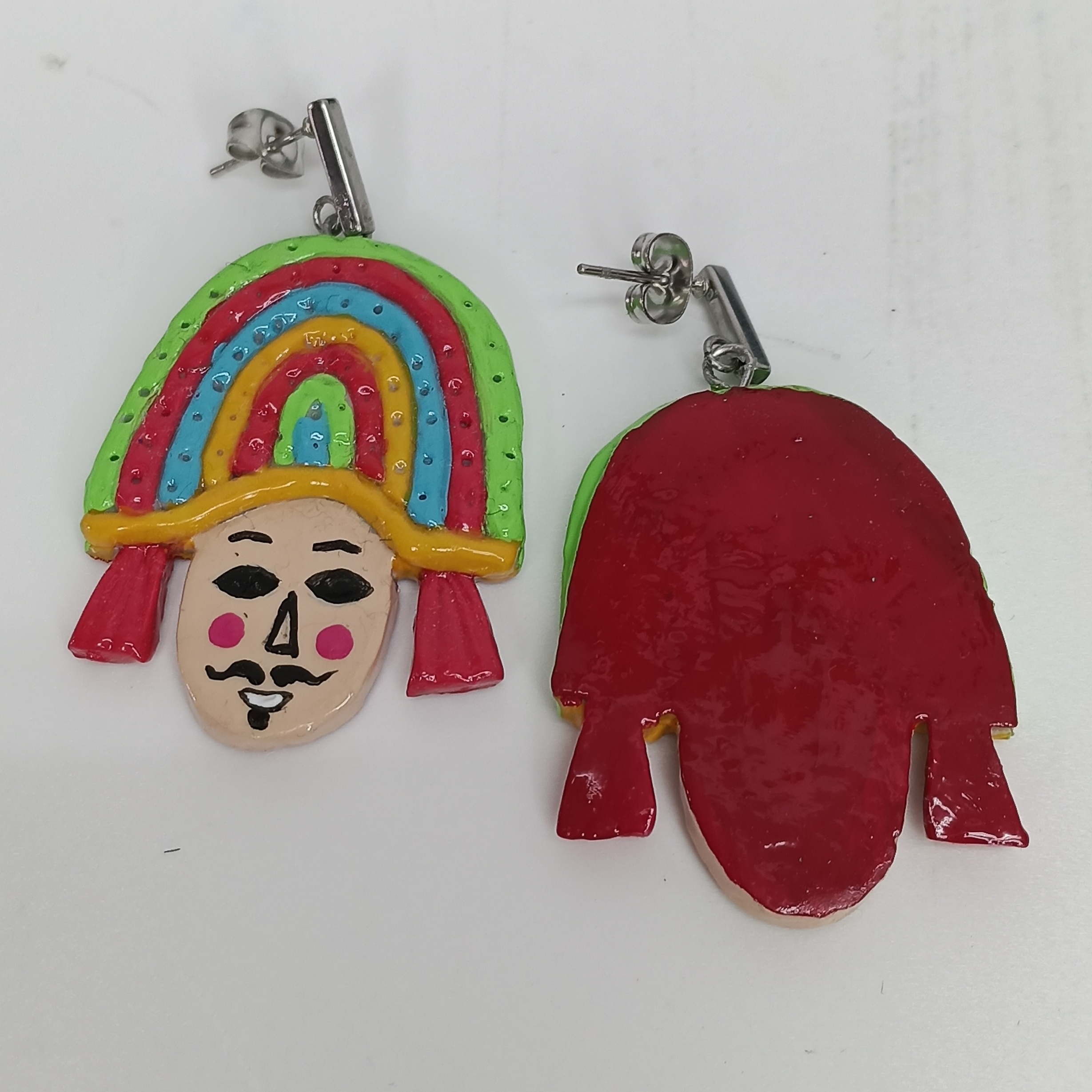 Pendientes artesanales de peliqueiros gallegos hechos con arcilla polimérica, pintados a mano y acabado brillante.