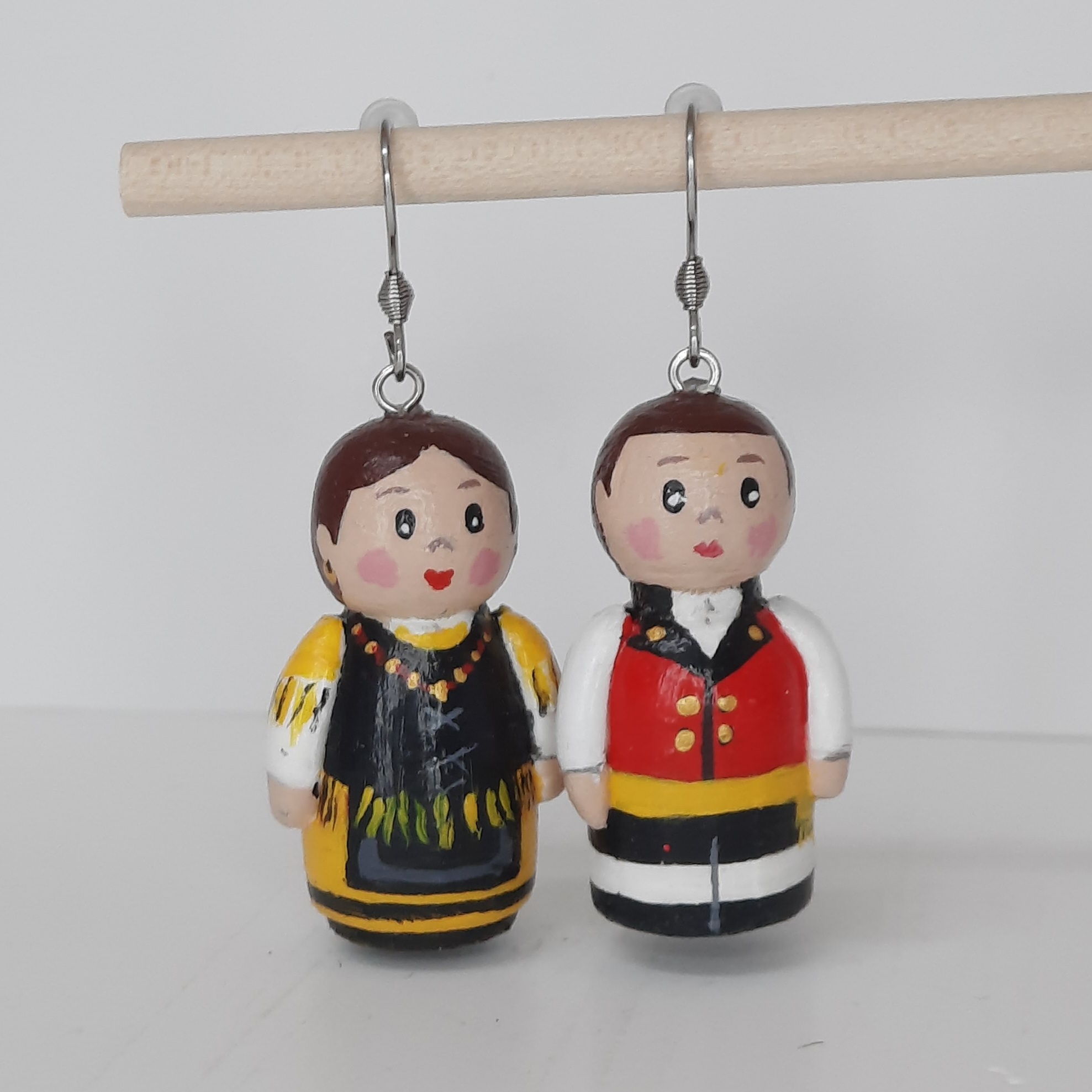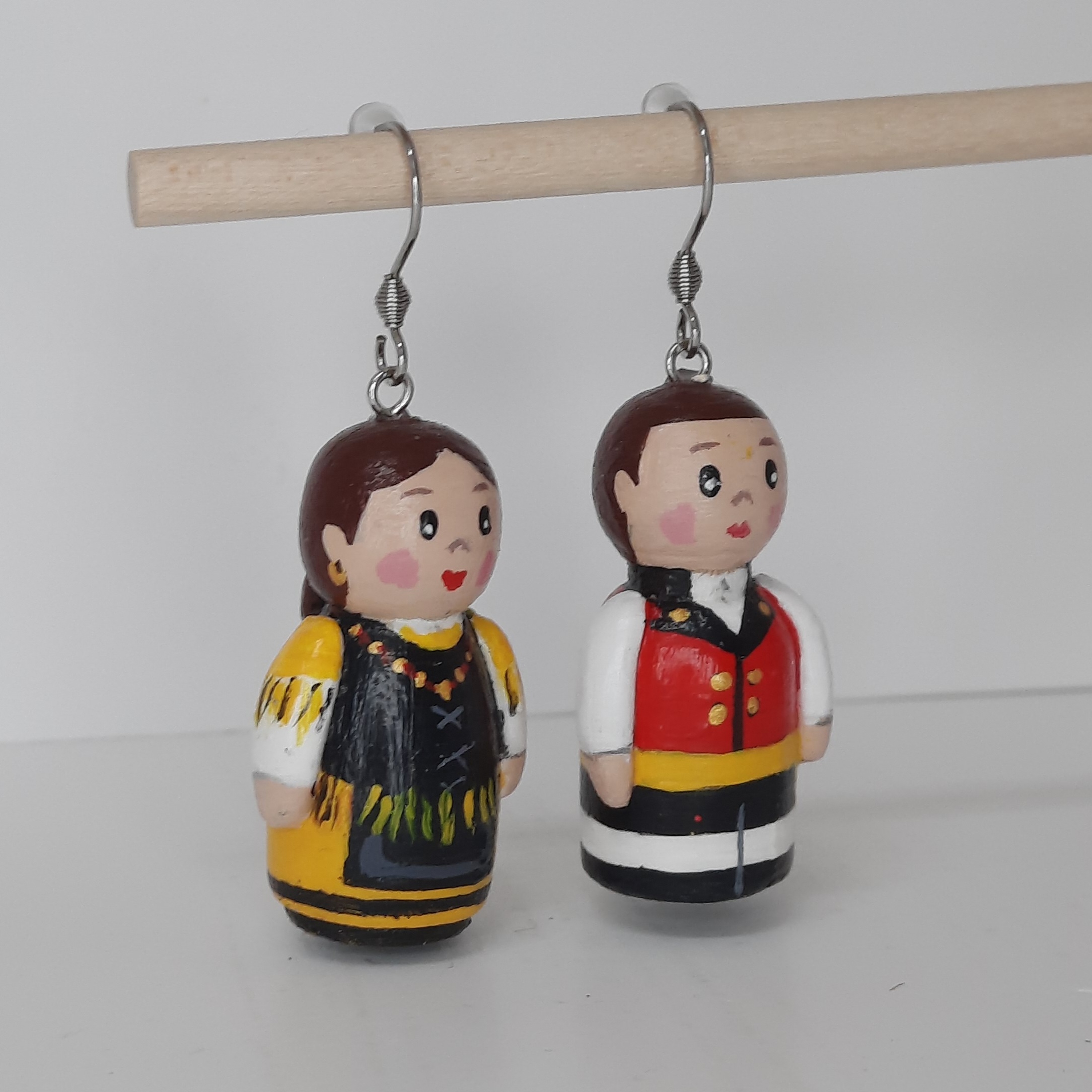 Estos pendientes de muñequitos de madera son una pieza artesanal y original, diseñada para quienes buscan accesorios diferentes y llenos de personalidad. Cada muñeco está hecho en madera, con pequeños detalles en arcilla y pintados a mano, lo que convierte cada par en una pieza única, con pequeños matices que reflejan el trabajo artesanal.